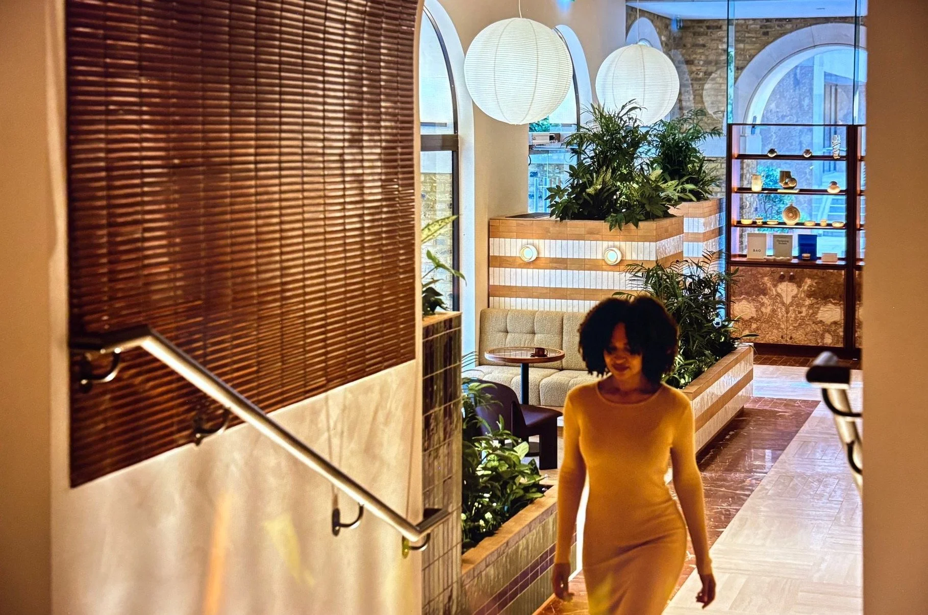 Housed in a former textile factory, the project embraced the narrative of “Redefining a Vision of Utopia.” The expansive ground floor was opened up to celebrate the original architecture, with large arched windows framing geometric-tiled planters that create moments of quiet reflection and reconnect visitors to the natural world.