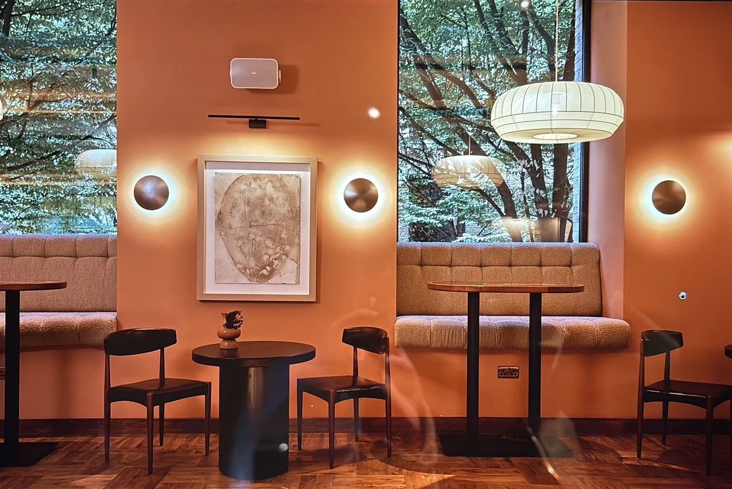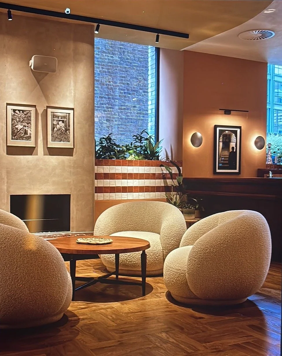 Housed in a former textile factory, the project embraced the narrative of “Redefining a Vision of Utopia.” On the expansive ground floor, the original architecture was celebrated and opened up to create a sense of fluidity and connection. Deep window bays in the lounge feature private seating booths and geometric-tiled planters, offering moments of quiet reflection and a subtle reconnection to the natural world.